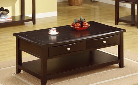 Espresso Finish Coffee Table with Two Drawers and Shelf Review