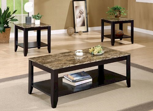 3PC Modern Marbleized Top Coffee Table Set With Coffee Table & End Tables In Espresso Finish. (Item# Vista Furniture CF700155) Review